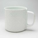 白磁の凹凸によって模様が描かれたマグカップ。柄はレギュラー7種類、トール2種類。